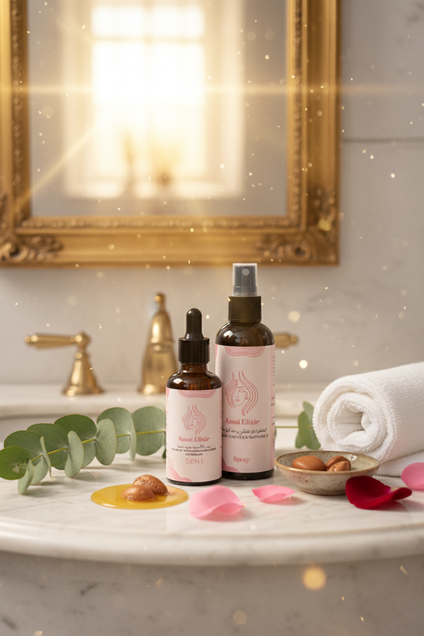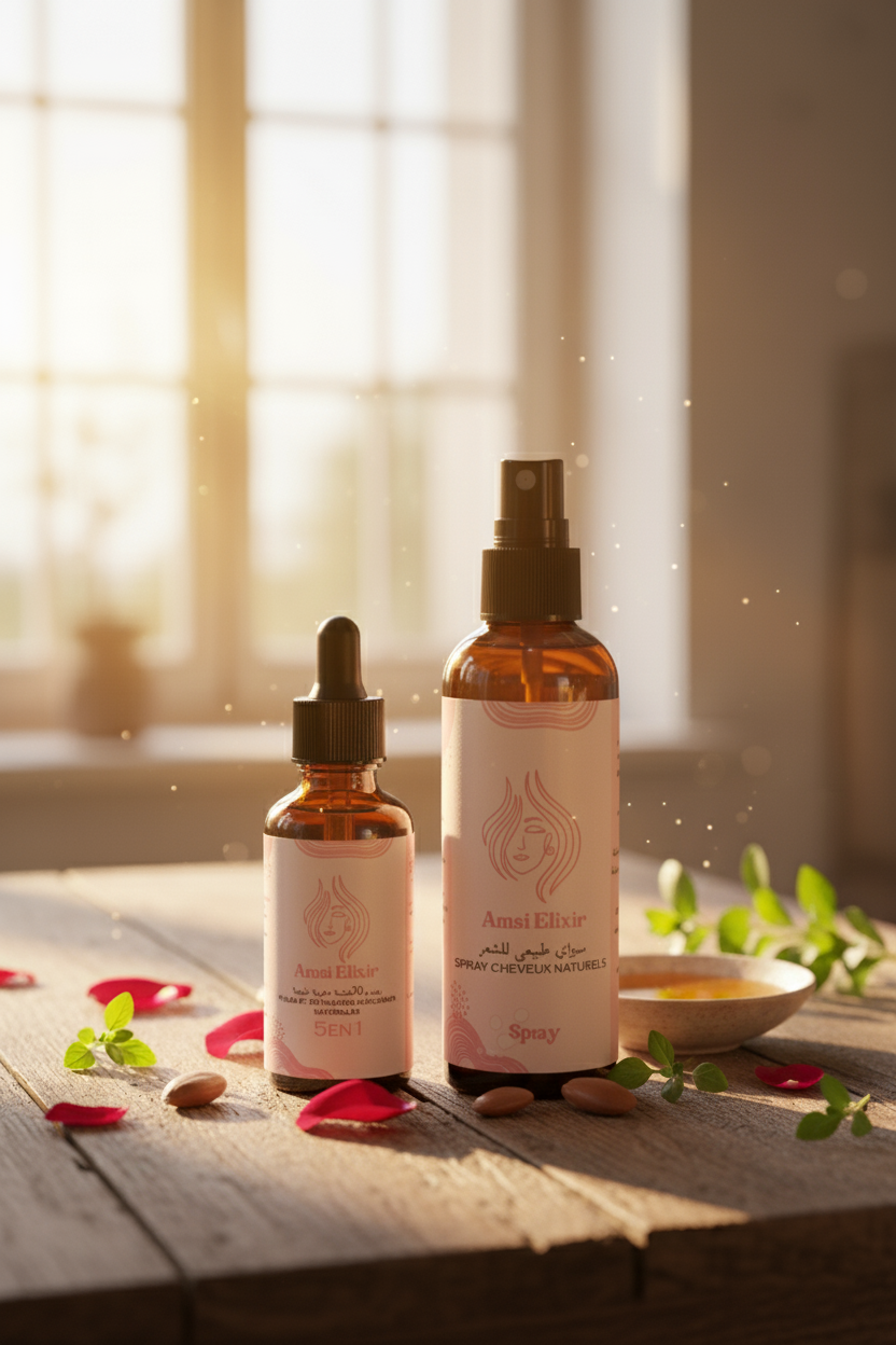 Amsi Elixir vous offre la puissance de la nature. Utilisez l'huile pour une nutrition intense et le spray pour une finition parfaite et une protection continue. Des produits conçus pour des cheveux sains et brillants, chaque jour.